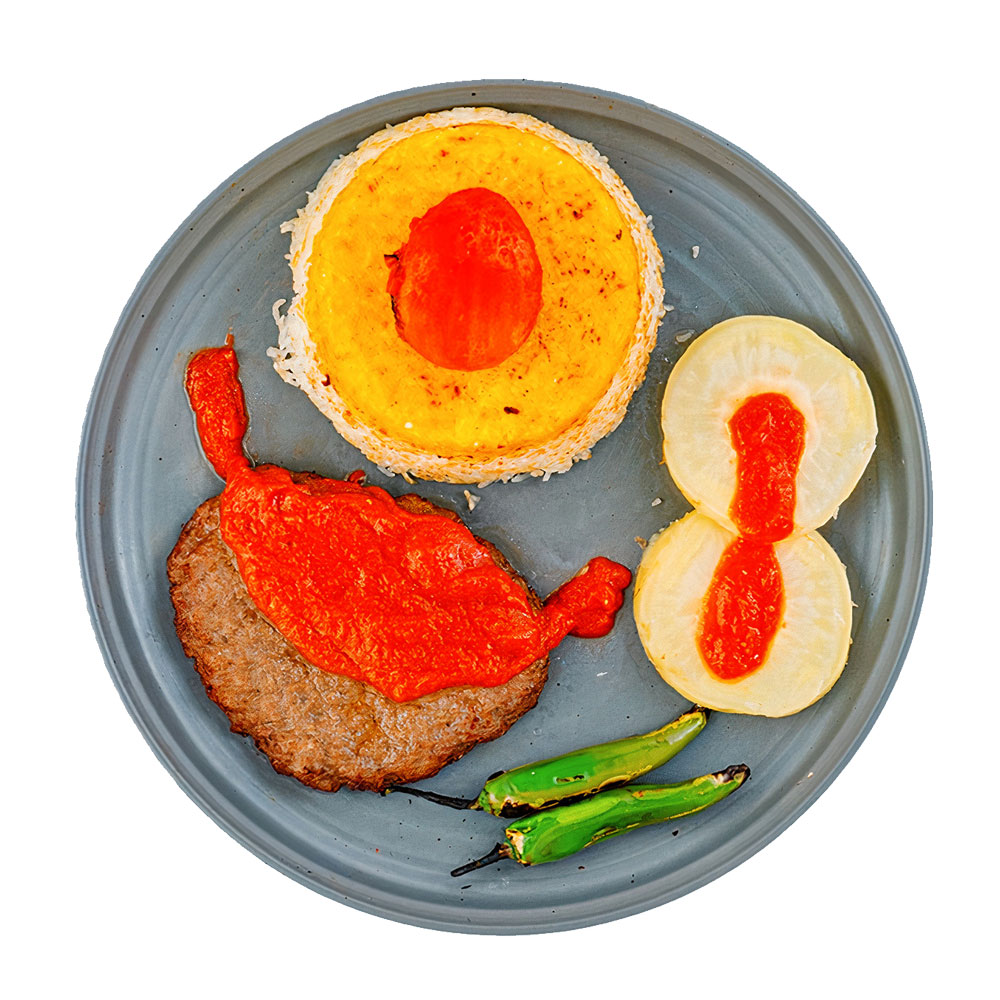 220 گرم گوشت مخلوط گوسفند و گوساله به همراه 400 گرم برنج درجه یک ایرانی به صورت قالبی